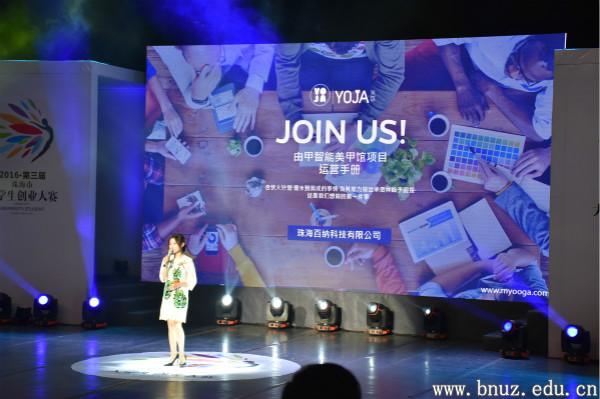 本网讯(通讯员 张帆)11月18日,由珠海市人力资源和社会保障局主办、珠海市人才资源与就业服务中心承办的“2016·第三届珠海市大学生创业大赛”总决赛在珠海电视台1200平米演播厅迎来了“最终的问鼎之战”。前期,经过激烈的角逐,白菜官网“由甲智能美甲”、“爱闯AIC青年社区”、“城市新媒体大数据分析系统”、“绿色智能机场埋藏式自动飞机牵引系统”、“即可日程产品全系列”五个参赛项目顺利进入本次市赛决赛。在决赛中,白菜官网创业团队表现突出,包揽实践组金奖,白菜官网荣获珠海市第三届创新创业大赛优秀组织奖。