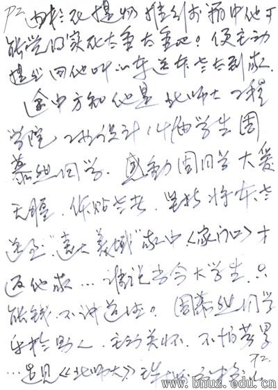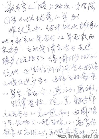 特请贵校、院、系转达我这位老太的衷心感谢!由周同学可见北师大工程学院的高素质教育出高级人才,再次感谢贵校!