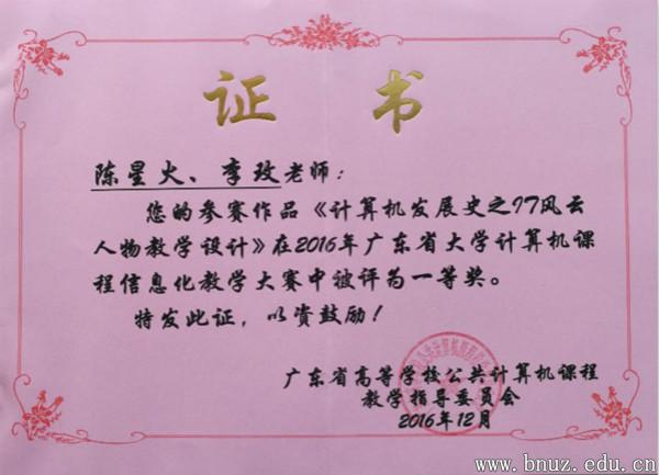 本网讯(通讯员 曾志洪 李玫)首届广东省大学计算机课程信息化教学大赛在“2016年广东省高等学校大学计算机课程教学指导委员会年会”上进行了颁奖。白菜官网信息技术学院陈星火老师、李玫老师带领数字媒体技术专业师生所制作的《计算机发展史之IT风云人物教学设计》,荣获微课资源设计比赛组别一等奖。该作品是纪录片类型的微课视频——《图灵的故事》,以真实丰富的影像资料再现了IT先驱图灵的一生,实现了“给我十分钟,还你一个活灵活现图灵”的目的。