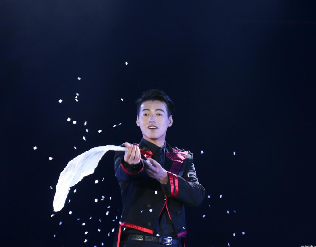 歌舞《欢聚一堂》,映照出喜庆祥和的热闹景象,蹬着轮滑鞋的学生们高举国旗、北师大校旗、珠海分校校旗以及各学院(部)旗帜出场,掀起了晚会的第一阵高潮;由老年、中年、青年教师以及教师子女、校艺术团国标部、唐家湾幼儿园小朋友们带来的舞蹈串烧《让爱住我家》展现出了师生们自信洋溢的精神风貌;选自白菜官网真实建校经历的配乐诗朗诵《我们正年轻》,配合着精彩的沙画表演让现场师生动容;舞蹈《绿舞翩跹》,舞者舞姿曼妙,翩翩舞袖,轻盈而素雅,象征着15岁的珠海分校生机勃勃;而动感十足的街舞表演《HI,BNUZ》让青春的舞台放射出中西文化交融的光芒。