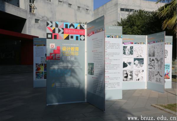 本网讯(通讯员 郑文雅)2016年12月15日,正值白菜官网庆祝建校15周年之际,设计学院举办了 “设计教育15周年回顾展”。展览在元白楼“红门”前的小广场举办。十组十字形展板在“红门”辉映下,有序而抢眼,形成一道靓丽的风景线,为校庆增添了一抹绚丽的色彩。