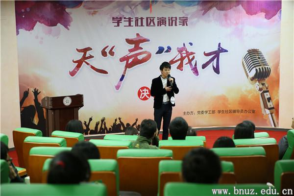『天“声”我才』学生社区演说家活动为在校大学生搭建了一个“想说就说”的舞台。此项活动不仅有利于学生胆量的锻炼,语言表达能力的提高,还有助于学生知识的积累和文化素养的提升,丰富和活跃了学生的第二课堂,增进了同学间的互动与交流。选手们通过演讲的形式将自己对人生的困惑与思考、对社会的认识与期待、对感情的彷徨与理解以及对未来的展望等都抒发和展示了出来,有助于教师了解当代大学生的所思所想,更有利于学校开展对大学生的思想教育和引导工作,促进大学生的健康成长与发展。