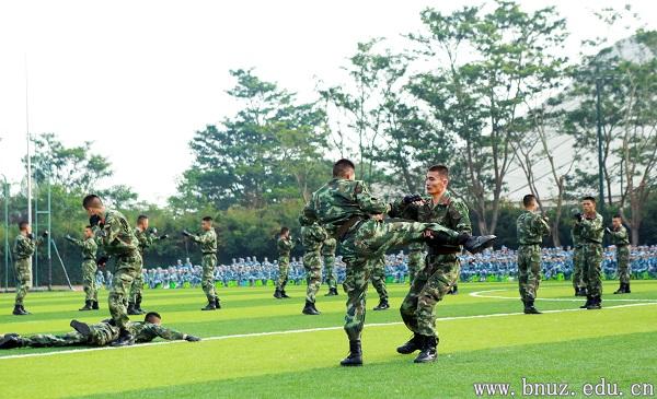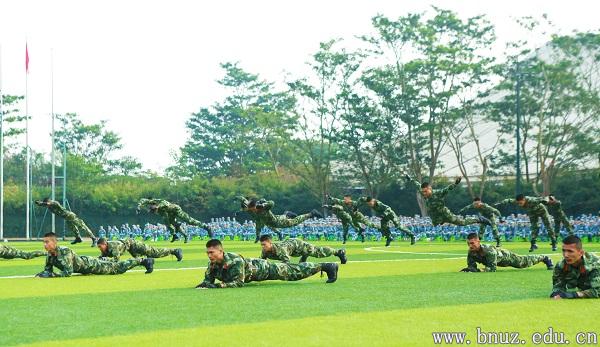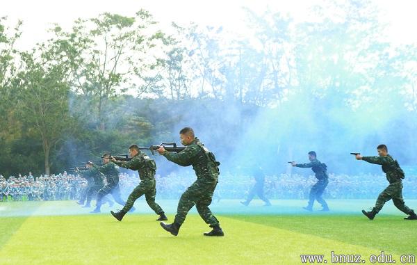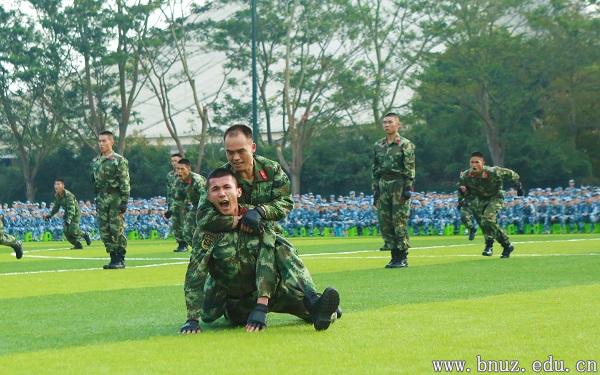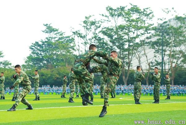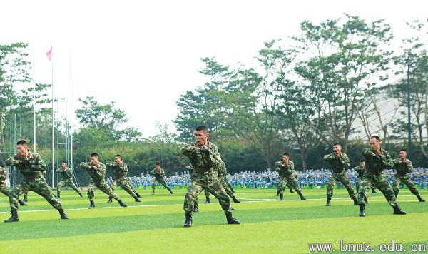 开训仪式最后由承训部队教官进行了匕首操、刺杀操、特种战术等7个科目的展示,精彩的表演赢得现场同学阵阵如雷掌声。