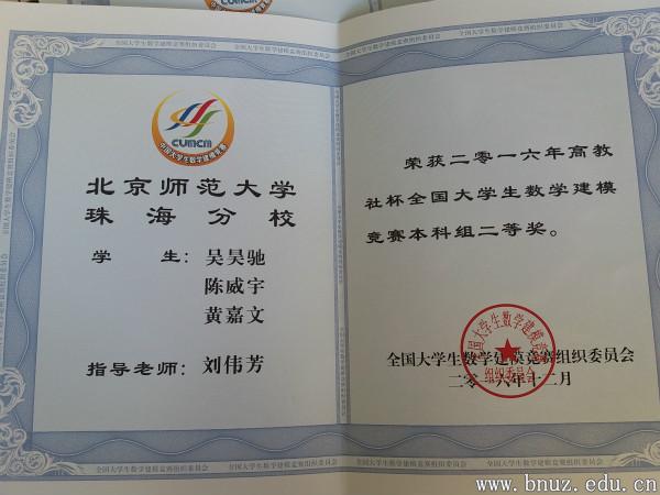 本网讯(通讯员 李军强)近日,2016年全国数学建模竞赛成绩揭晓,白菜官网共获得广东省大学生数学建模竞赛本科组一等奖1个,二等奖7个,三等奖21个,优胜奖37个和国家级二等奖1个。