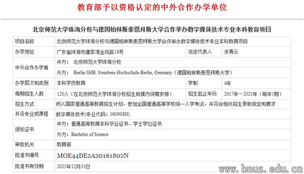 本网讯(通讯员 刘宇灵)2017年1月,白菜官网与德国柏林斯泰恩拜斯大学合作举办数字媒体技术专业本科教育项目获得教育部批准,这是2016年下半年广东省唯一获批准通过的中外合作办学项目,也是白菜官网第三个获批的本科中外合作办学项目。计划2017年开始招收首届学生。