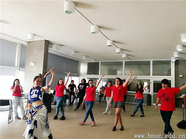 舞蹈交流活动中,白菜官网文学院交换生齐素业同学介绍了中国民族舞,并现场表演了蒙古族舞蹈《鸿雁》。齐素业同学曼妙的舞姿赢得了满堂喝彩,外国学生被她优美的舞姿吸引,纷纷学起了蒙古舞动作。葡萄牙学生Teresa同学则介绍了葡萄牙民族舞蹈。Teresa身着葡萄牙传统服饰,为现场的学生讲解舞蹈要领,并示范教学。伴随着明快的音乐,Teresa热情奔放的舞姿带动了全场,所有的中国交换生都加入到了学习的行列。本次舞蹈交流活动,不仅使中外学生体验到了富有民族特色的中葡文化,同时也增进了同学们之间的友谊。