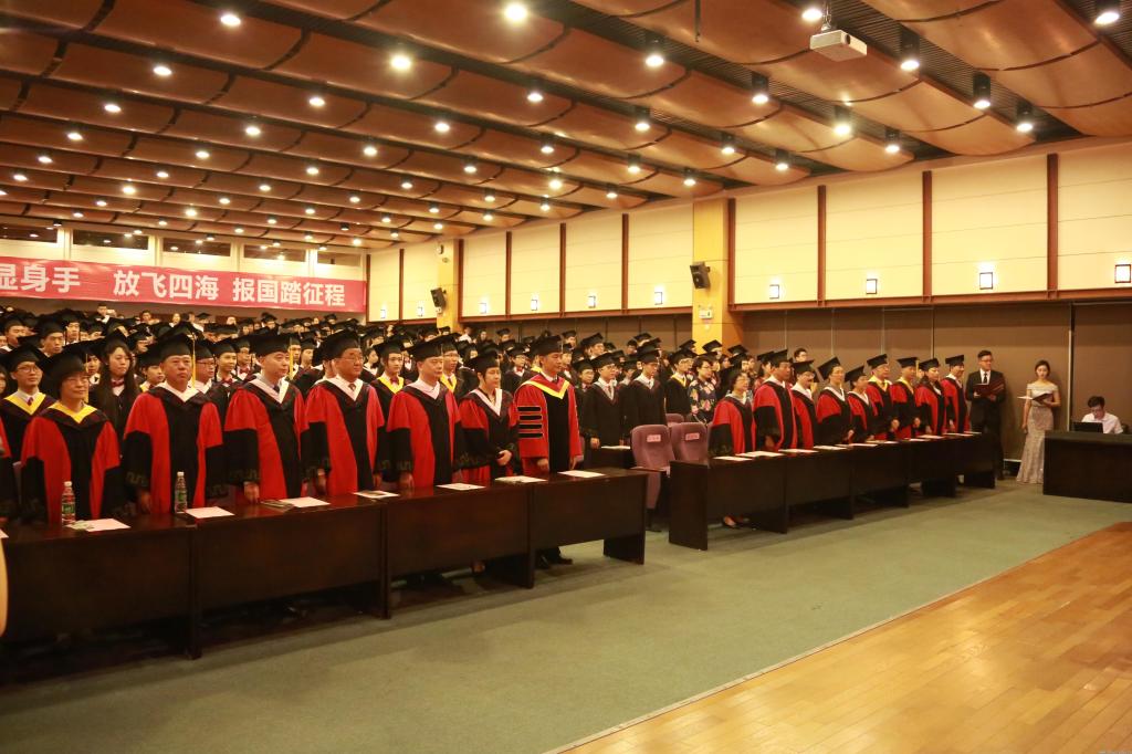 典礼上,副校长虞立红宣读了《关于表彰2017届十佳毕业生、十佳毕业生提名奖获得者和优秀毕业生的决定》。涂清云校长、耿向东书记共同为十佳毕业生颁发毕业证书并授予学士学位。随后,校领导、学院(部)领导一起为来自全校15个学院(部)的近三百名毕业生代表行拨穗礼并颁发了学位证书。