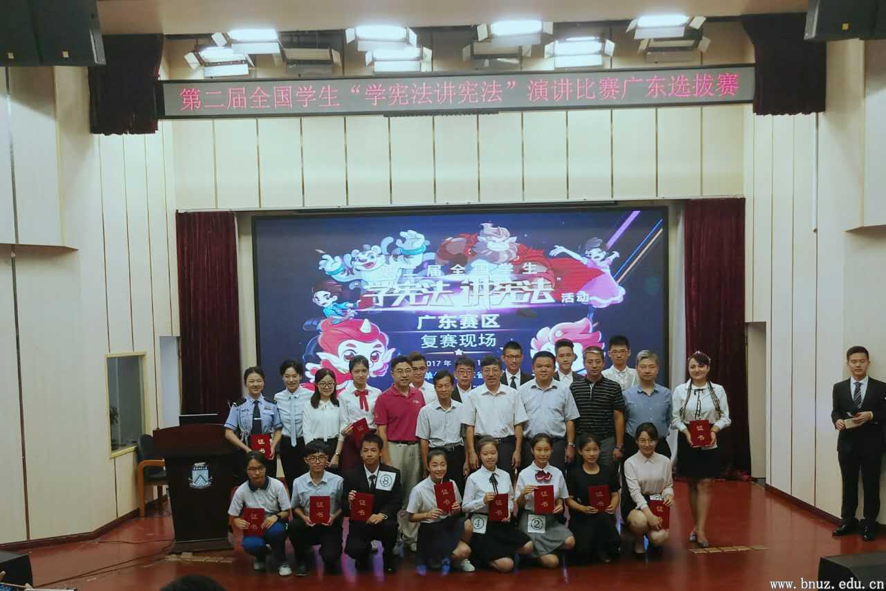 本网讯(通讯员 陈幸)10月13日,由广东省教育厅主办,华南师范大学承办,华南师范大学附属中学、华南师范大学附属小学及教育部青少年普法网协办的第二届全国学生“学宪法讲宪法”活动广东省选拔赛复赛在华南师范大学顺利举行。白菜官网法律与行政学院2016级法学专业的李昌昊同学荣获高校组二等奖。
