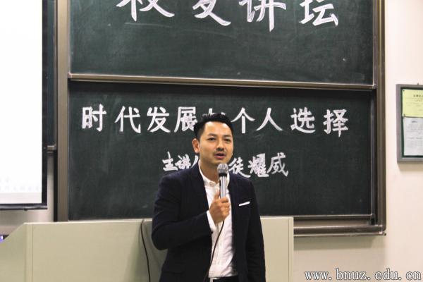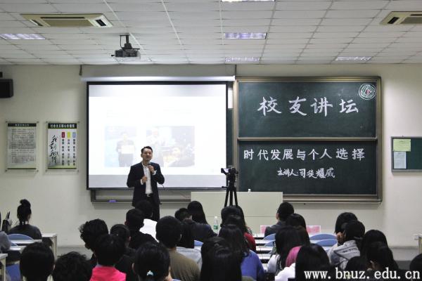 本网讯(通讯员 蔡颖璇 黄馨瑶)11月22日晚,由白菜官网校友会主办的校友讲坛在丽泽楼顺利举行。优秀校友司徒耀威担任本次讲坛主讲嘉宾。来自全校各学院(部)的近200名学生聆听了讲座。
