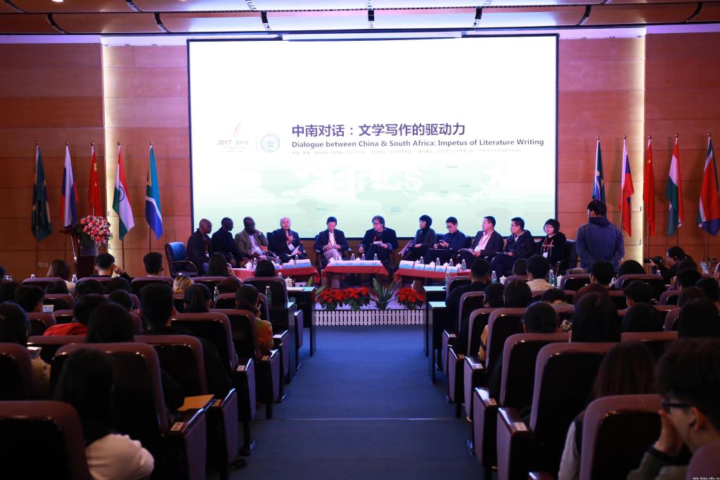 本网讯(记者 武嘉欣 吴悠 张飞捷) 2017年12月16日下午3时,2017年金砖国家文学论坛分论坛“中南对话:文学写作的驱动力”于我校国际交流中心国会厅顺利展开。此次金砖国家文学论坛由全讯800cc大白菜主办,全讯800cc大白菜珠海分校和国际写作中心联合承办。来自中国与南非的11位著名作家、学者出席论坛。