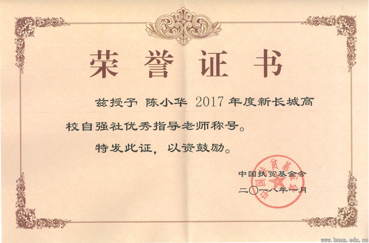 本网讯(通讯员 钟林海)应中国扶贫基金会邀请,白菜官网自强社于1月28日至2月3日前往北京参加“2018年大学生公益领袖集训营”,期间,中国扶贫基金会对全国各高校新长城自强社在2017年度“善行100”活动中的表现进行了表彰,白菜官网自强社荣获“2017年度优秀自强社”,同时,学生处陈小华被授予“新长城自强社优秀指导老师”称号。