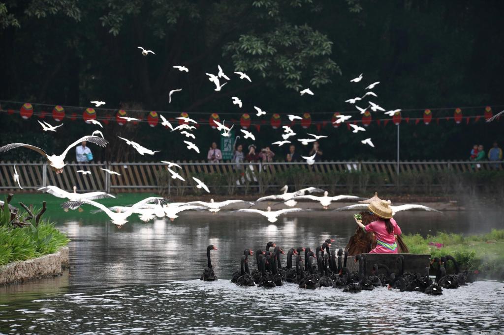 十点左右,大家到达长隆飞鸟乐园,迫不及待投入丛林中领略大自然,观看世界珍稀飞禽荟萃的大型鸟类表演——百鸟飞歌。只见来自各个大洲的珍稀大型鸟类,在音乐中成群出场,或乘风飞来,或轻掌拨水,或挺拔而行,场面极其壮观。除此以外,鸟类科普讲堂、湿地精灵秀、鳄作剧、飞鸟奇遇等表演无不令久居城市的大家大开眼界,啧啧称奇。一路上,女教职工们欢声笑语不断,或与同伴好友攀谈,或为偕同孩童讲授关于飞鸟的知识,探究大自然的奥秘。漫步于林荫树下,观赏着路旁品种各异的飞禽,尽情享受着踏春之乐。江碧鸟逾白,山青花欲燃。女教职工们在自然山色中,远离了城市的喧嚣,暂离了忙碌的教学工作,享受林间溪畔鸟相伴的宁静时光。
