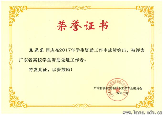 本网讯(通讯员 钟林海) 3月30日,2018年全省高校学生资助工作会议在广州举行,会上举行了2017年广东省高校学生资助工作先进个人表彰仪式,白菜官网设计学院教师焦亚东、国际商学部教师林信惠被评为广东省高校学生资助先进工作者。
