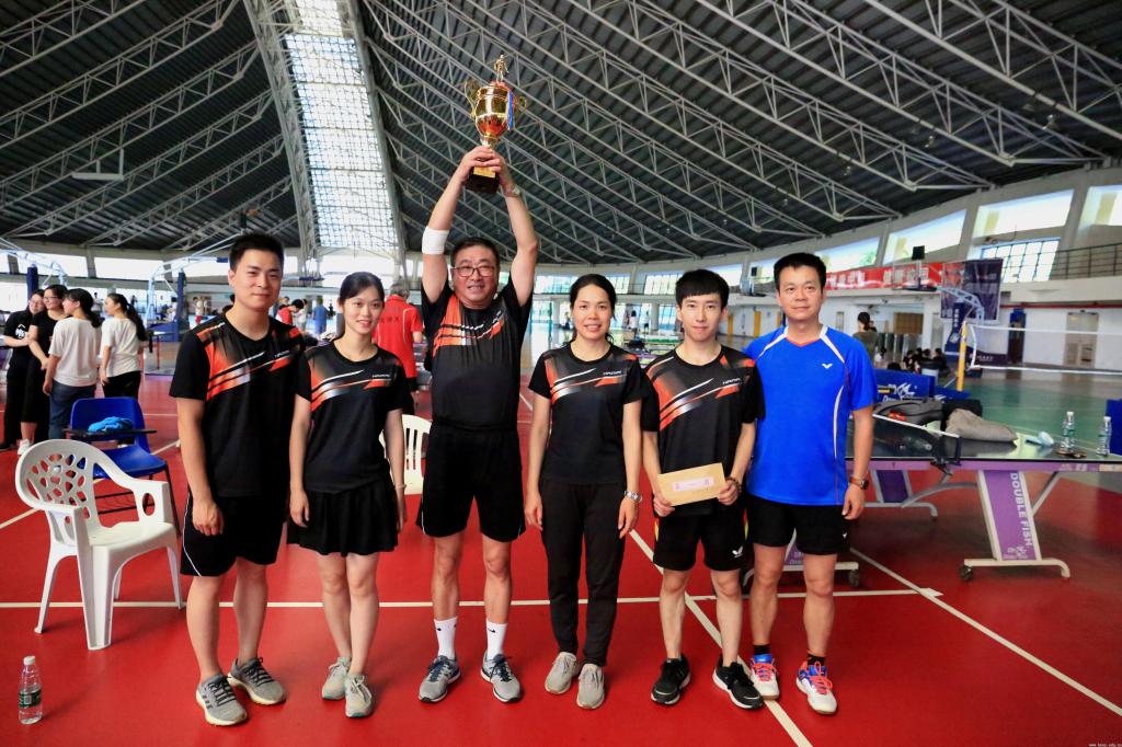 珠海天气炎热高温,体感温度达38度,上午小组循环赛中,各支队伍运动热情高涨,一展球技,为球队争取出线权。经过一个上午的角逐,国际商学部、教学部、应用数学学院、信息技术学院、发展部、行政部、不动产学院以及继续教育学院获得了出线权挤进前八强。在下午的交叉淘汰赛中,上半区不动产学院继续在主力老将刘权老师的带领下,毫无悬念地取得了一个决赛名额。下半区的继续教育学院以小将曾志鹏为主力,一路连胜,在淘汰赛又连克设计学院和发展部,最终和不动产学院在决赛中相遇。两强队伍“交战”中,在团体赛中相遇的刘权和曾志鹏的男子单打引起了众人的关注。双方选手实力相当,他们熟练地使用直拍、横拍、扣球、搓球、旋转球和弧线球等花样百变的打球技法,让在场的观众应接不暇,大家一次又一次地报以热烈的掌声和欢呼声。最后,继续教育学院在第四项男女混双比赛中获胜,以3:1的总成绩卫冕乒乓球赛冠军。