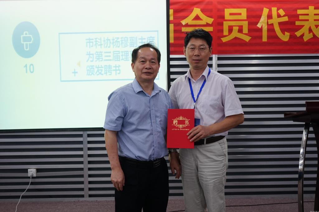 珠海市科学技术协会副主席杨穆为珠海市计算机学会第三届理事会理事长赵志文颁发聘书。杨穆肯定了珠海市计算机学会携珠海市多所高校和IT界单位,多年来为推动珠海市信息技术发展所作的贡献,并希望新一届领导班子继续在开展学术交流、加强技术研究、促进行业发展、服务地方经济等方面做好排头兵和领头羊,为珠海建设成为粤港澳大湾区创新高地贡献力量。