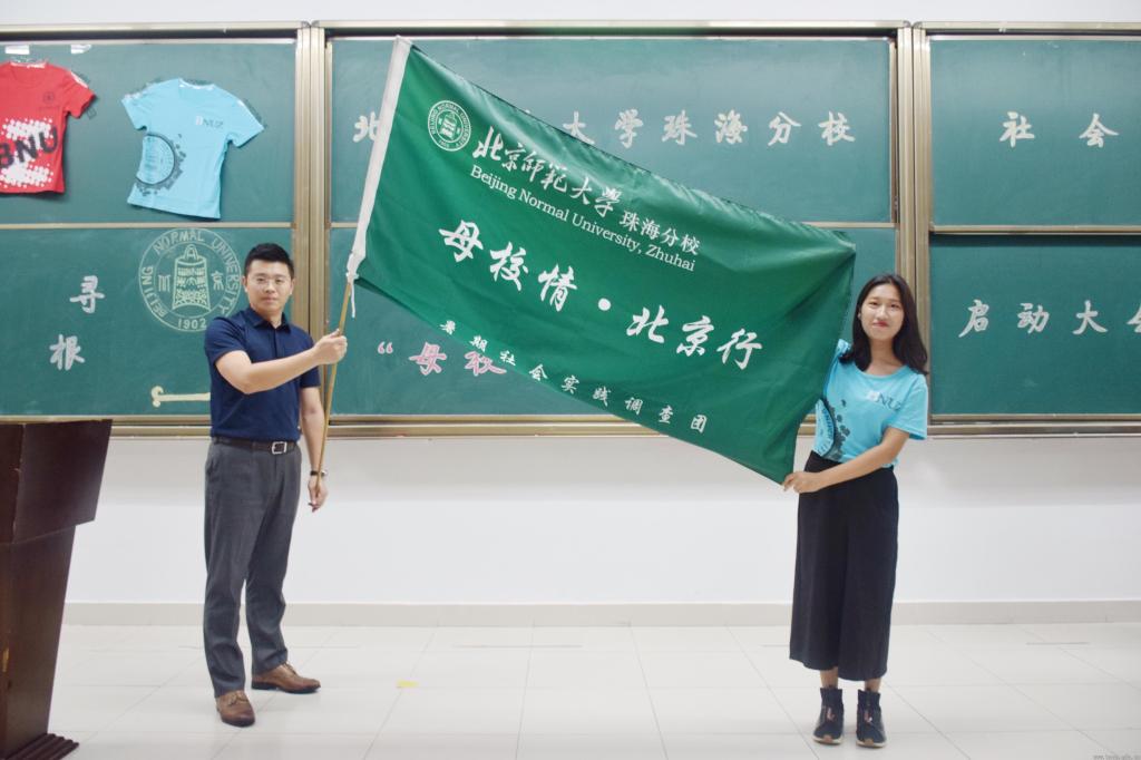 学生处处长李楠老师为同学们简要介绍了珠海分校的发展历程,以及举办本次活动的多重意义。他强调目前是珠海分校发展的重要阶段,同学们通过“北京行”活动能够很好展现珠海分校学子良好的精神面貌,加强与校本部的文化交流。他希望在“北京行”期间同学们能精神饱满、善于学习、团结互助,更好实现本次活动的目标。李楠老师还向第八届“北京行”社会调查团学生代表授旗。
