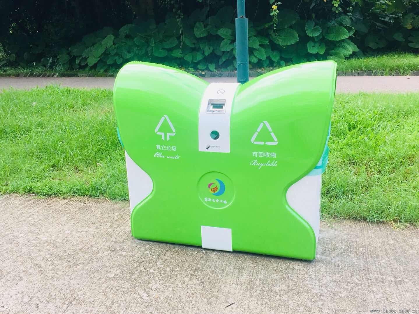 体育路总长910米,共安装了10组蝴蝶型分类环保垃圾箱,不仅方便了行人投递垃圾,也美化了体育路道路景观。该新型垃圾箱垃圾分类标识更加科学,不仅有常规的“可回收物”和“其他垃圾”两类,还设有电池收集容器和烟灰投放处。