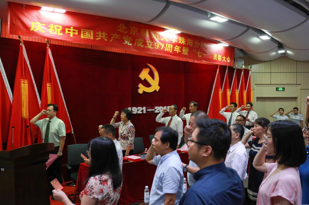 耿向东在会上讲话。他向全校广大师生党员致以节日的问候,向受表彰的先进集体、先进个人和新加入党组织的同志表示祝贺,向为学校发展辛勤努力工作的同志们、校内各民主党派和无党派的同志们和全体共青团员们,致以崇高的敬意!他回顾了中国共产党成立97周年以来的历史,尤其是党的十八大以来党取得的辉煌成就,对过去一年来学校党建工作进行了总结,并对今后一个时期的党建工作提了四点要求:一是要提高政治站位,坚定政治方向。持续深入学习习近平新时代中国特色社会主义思想和党的十九大思想,坚决维护以习近平同志为核心的党中央权威和集中统一领导。二是要夯实基层党建,推进全面从严治党。扎实推进基层党组织标准化规范化建设和组织力提升,推动党的全面领导在基层落实、全面从严治党向基层延伸,实现党的基层组织建设全面进步、全面过硬。三是要坚持解放思想,推动工作创新。认真落实“大学习、深调研、真落实”工作部署,扎实推动思想大解放、作风大转变、效率大提升。四是提升自身素质,适应新时代要求。广大党员教师以及全体教职员工要始终坚持以“四有”好老师标准严格要求自己,做到政治素质过硬、业务能力精湛、育人水平高超,更好地担当起学生健康成长指导者和引路人的责任。学生党员要坚定理想信念,志存高远,脚踏实地,全心全意勇做时代的弄潮儿,建功新时代!他希望全体师生党员牢记使命,担当作为,自觉加强理论学习,自觉锤炼素质作风,以饱满的工作热情和开拓进取的精神状态,全力推动白菜官网各项工作健康有序发展,不断开创新时代白菜官网党建工作新局面。