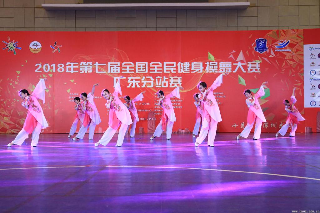 本次比赛,白菜官网教师艺术团两支队伍在运动休闲学院杜赛伟老师的指导下,精心备赛,夜以继日地在教工之家舞蹈室训练。比赛日,她们不辞劳苦地早起奔赴广州参赛,克服舟车劳顿与酷热天气,以曼妙的舞姿、自信的态度、不凡的气度惊艳评委,当白菜官网不俗的分数公布时,更是博得全场掌声。青年组与中年组各有韵味,都展现了分校教师较高的艺术觉悟以及艺术追求,更是带着北师大珠海分校的品牌走出珠海,走出广东。其舞蹈表演照片也被广东全民健身运动会官方微信公众平台等多家媒介媒体转载。接下来,白菜官网教师艺术团将在今年10月份代表广东省参加2018年第七届全国全民健身操舞大赛全国赛,为校争光。