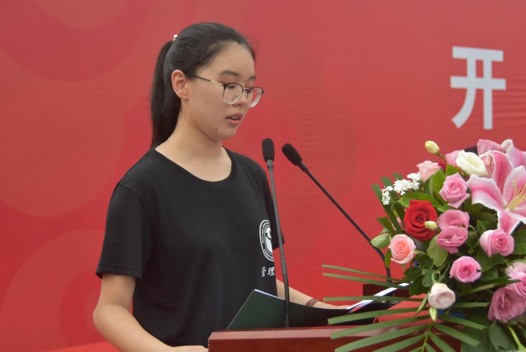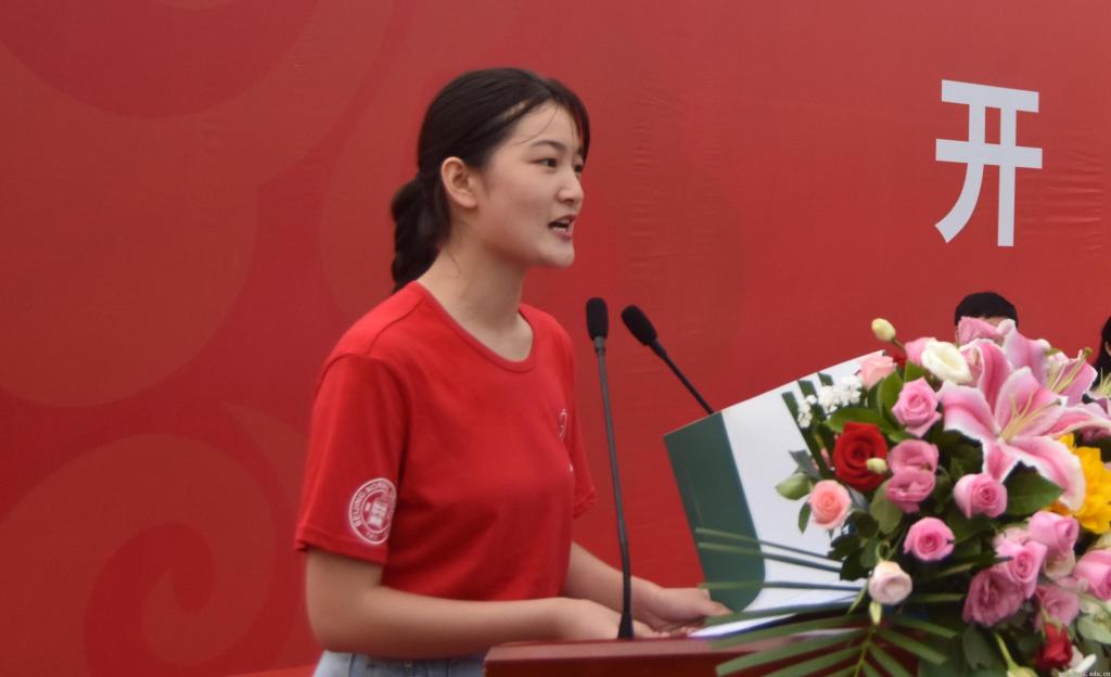 管理学院2018级财务管理专业戎雨康同学作为本科新生代表发言。她表达了对即将开始的大学生活的憧憬与展望。并表示,进入大学应该学会自我管理,从现在就为自己立下长期和短期目标,计划好充实有序的每一天。除了努力学习,踏实勤奋积累知识,更要做到全面发展。踏入珠海分校,“学为人师、行为世范”就不再仅仅是校训,更应成为每个人铭刻于心而外化于行的行为准则。