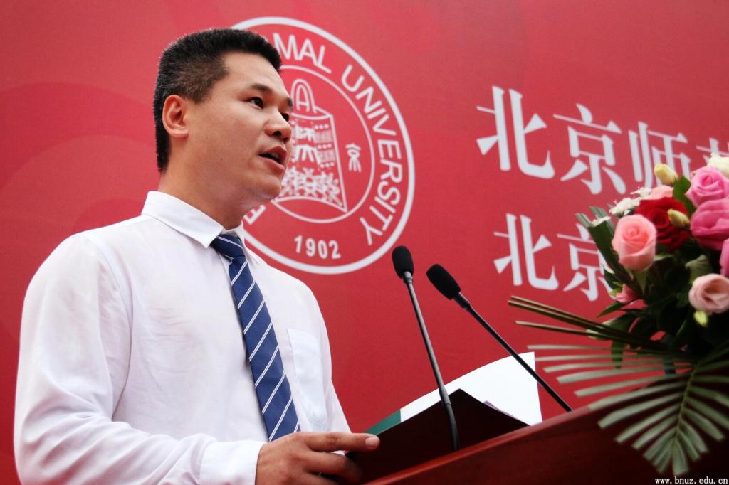 北师大研究生院珠海分院学科教学语文专业2018级张清楠同学代表研究生发言。她倡导同学们不应该止步于进入北师大,而是应该继续不忘初心,砥砺前行,既要学习好专业知识,还需要不断明确前行的方向;身处浮躁的时代,始终牢记“学为人师,行为世范”的校训,不急功近利,不好高骛远,清心笃行,不断在实践中成长。
