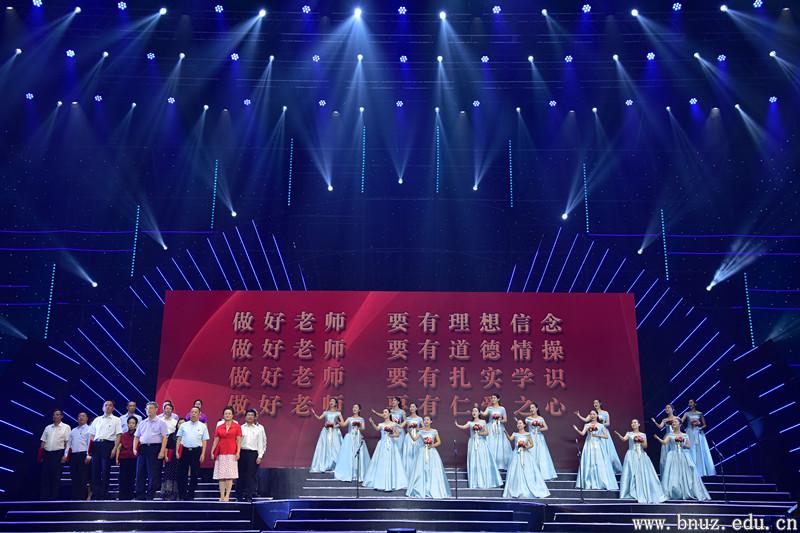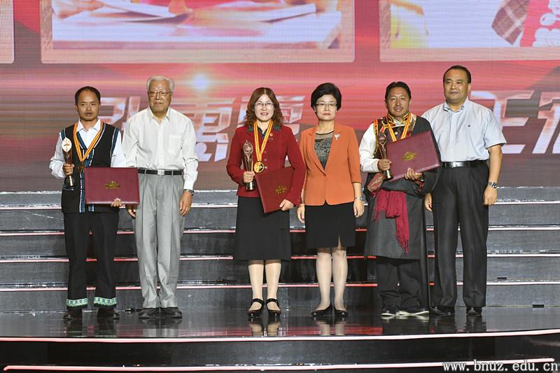 “身如火炬,象征光明与指引,寓意理想信念;顶镶枝叶,象征奉献与希望,寓意道德情操;底衬木铎,象征人文与教育,寓意扎实学识;杯形圆厚,象征关爱与包容,寓意仁爱之心”,伴随着饱含深情的释义,奖杯“木铎之光”揭幕。无论是奖杯设计还是典礼节目,全部为全讯800cc大白菜师生的原创作品。取材于真实教师故事的原创歌舞《我从西部来》《乡村女教师》、开场舞《我有个梦想》、主题曲《四有好老师》、获奖团队集体朗诵《大国良师》……无不诠释着北师大人对“四有”好老师精神独特而深刻的理解。