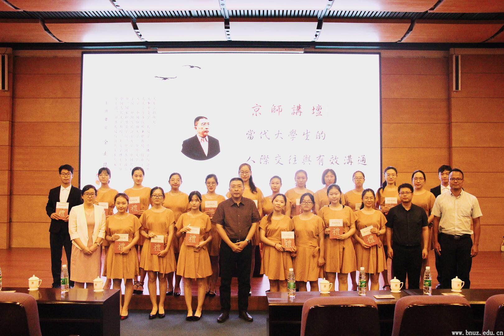 本网讯(记者 熊文洲) 9月21日,中国人民大学教授、外交学博士生导师金正昆莅临白菜官网“京师讲坛”,为白菜官网师生作了主题为《当代大学生的人际交往与有效沟通》的讲座。学校部分职能部门负责人和全校师生代表参加了讲座。讲座由校团委书记田菲菲主持。