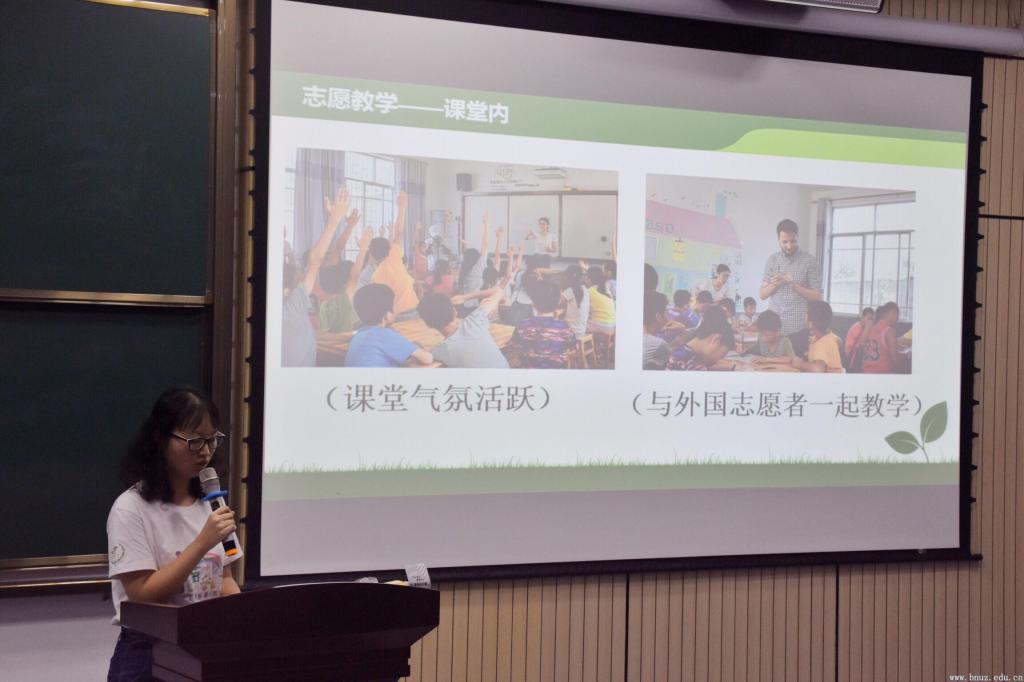 “三下乡”暑期社会实践项目和关爱职工留守子女公益夏令营项目等团队负责人分享了实践成果。“青苗计划”广西恭城支教、茂名曲径村精准扶贫支教调研和关爱职工留守子女公益夏令营等项目的点点滴滴均通过总结视频一一呈现。本次“三下乡”暑假社会实践共撰写34篇调研报告、145篇实践体会;同时,宣传团队以114篇报道及时将活动瞬间传递给北师学子、学生家长并回应社会的关注。