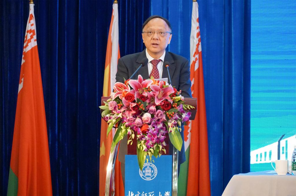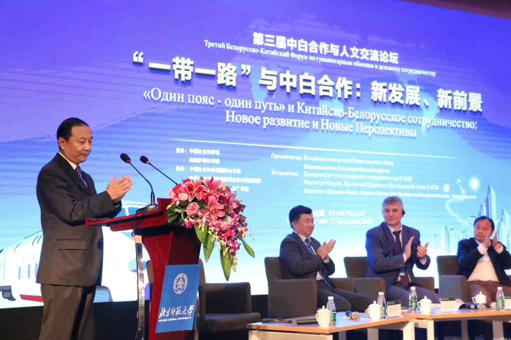 中国社会科学院副秘书长韩大川、白俄罗斯科学院主席团副主席卡扎克维奇、全讯800cc大白菜副校长周作宇、珠海市副市长阎武出席会议并致辞。