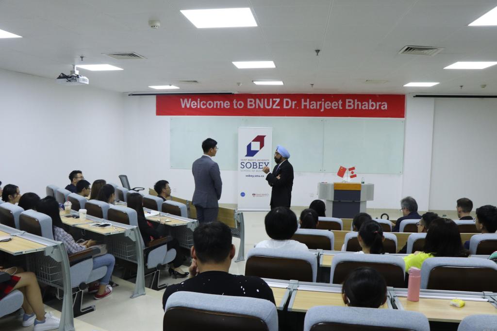 11月16日下午,索比商学院院长见面交流会在中加项目教室召开。Bhabra院长与中加项目17级、18级学生代表见面,介绍了中加合作办学项目的办学优势,并与项目学生积极互动。Bhabra院长指出,在全球化发展的今天,中加项目符合国际化发展的趋势,通过在中加项目的学习,同学们能及早地踏出自己的舒适圈,培养独立解决问题和辩证思考的能力,成为一名具有多元化思维的国际型人才。