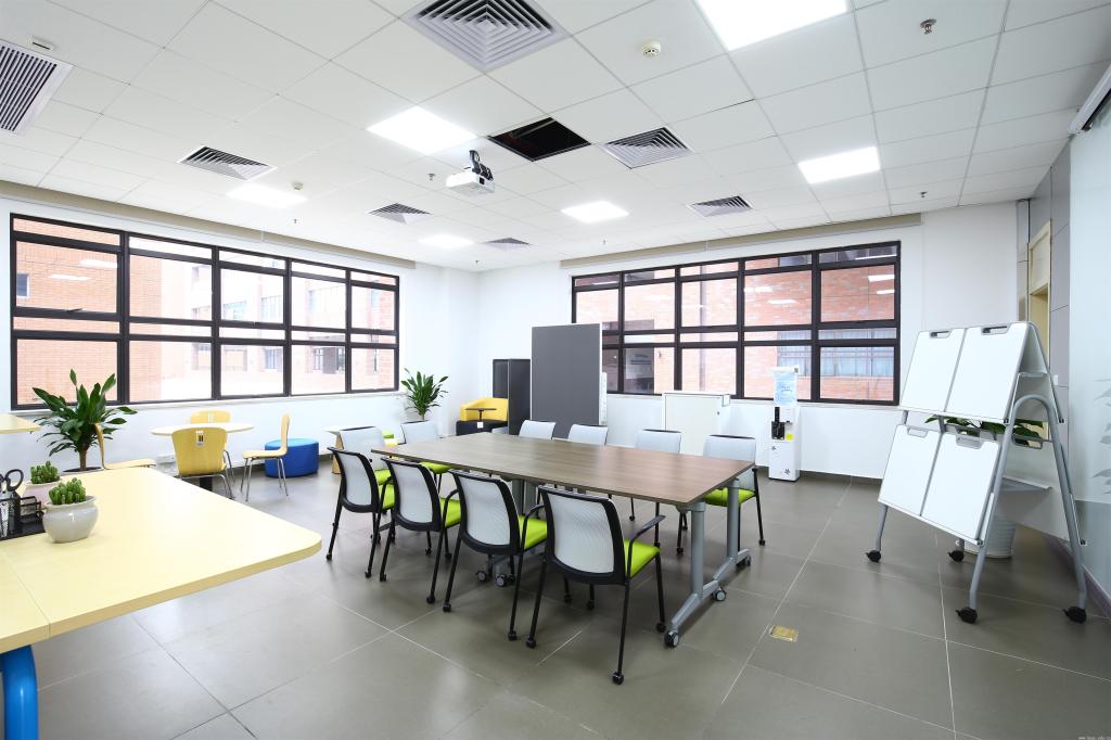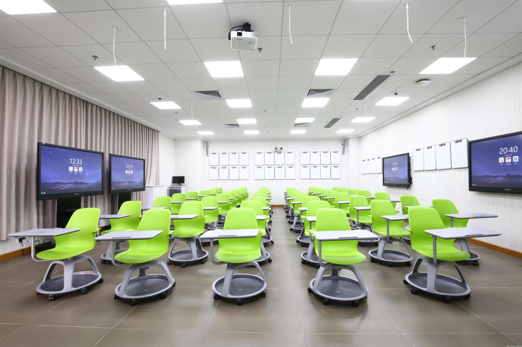木铎楼A303配有两个办公电脑位、一台65寸互动触控一体机、休闲沙发、休闲凳、可擦写玻璃圆台和饮水机,可用于教学研讨。木铎楼A304配有四个公用电脑位、无线高清投影机、休闲沙发、玻璃圆台、双面白板及挂架、小型会议桌、打印机,可用于备课、交流和研讨。木铎楼B309为“智慧型”教师教学培训室,该房间配有五十把新型移动式书写板一体椅,四台65寸互动触控一体机、无线高清投影机、四十块双面白板和全自动精品录播系统等设备,构建了现代化教师教学培训环境。中心近期将面向广大教师,举办教师教学发展中心设施设备使用培训。