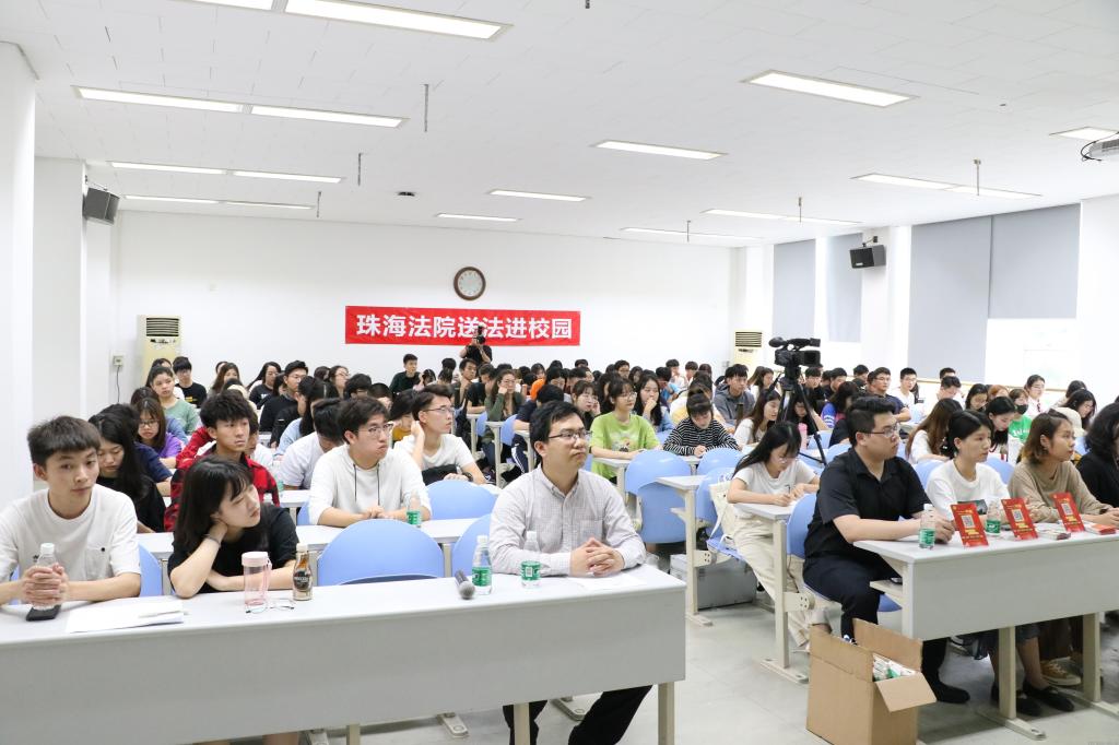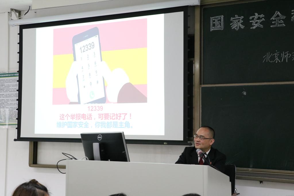 本网讯(通讯员 张文雯 胡佳瑶)为深入学习宣传习近平总书记关于全面依法治国、坚持总体国家安全观的重要思想、重要指示,大力普及国家安全法、网络安全法、反恐怖主义法等涉及国家安全的法律常识,增强全体公民的国家安全意识,增强广大师生反谍反间意识,4月18日,国家安全主题教育讲座在学校顺利举行。珠海市中级人民法院审判委员会委员、刑事审判第二庭长谢志刚应邀主讲,讲座由校团委副书记何广材主持,中院部分法官、学校各学院(部)学生代表参加讲座。