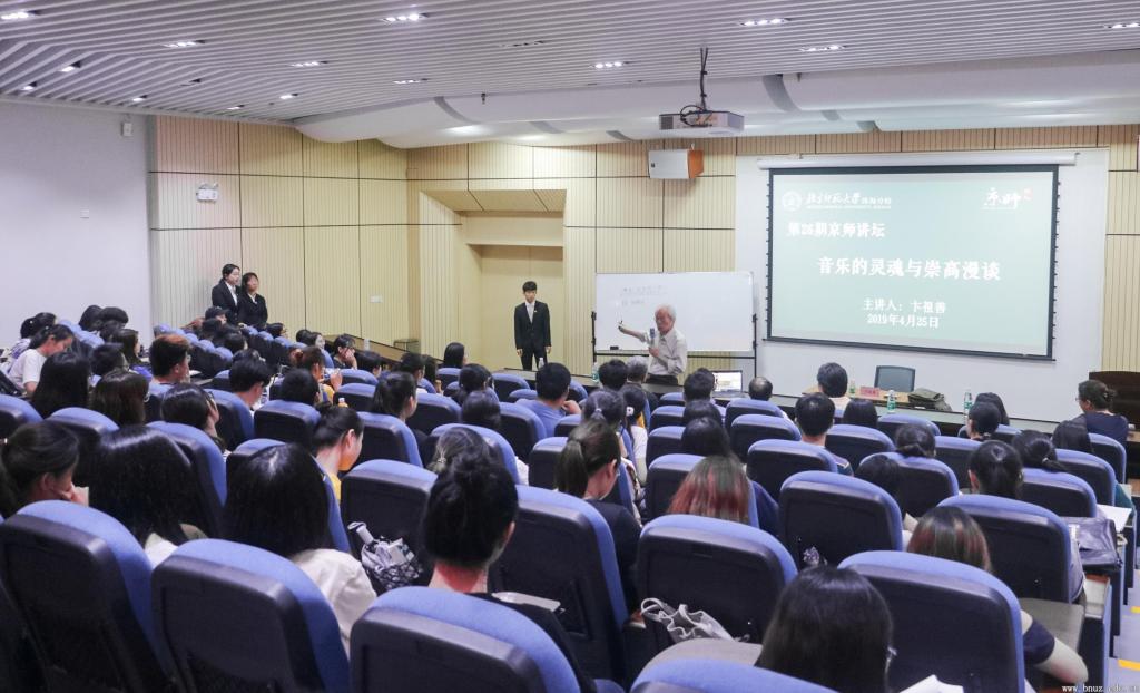 本网讯(通讯员 朱晓丽 梁沛雯)4月25日晚7点,白菜官网第二十六期京师讲坛在木铎楼A215顺利举行。国家一级指挥家卞祖善先生应邀主讲,校团委负责人和各学院(部)200余名学生参加讲坛。本期讲坛由校团委书记田菲菲主持。