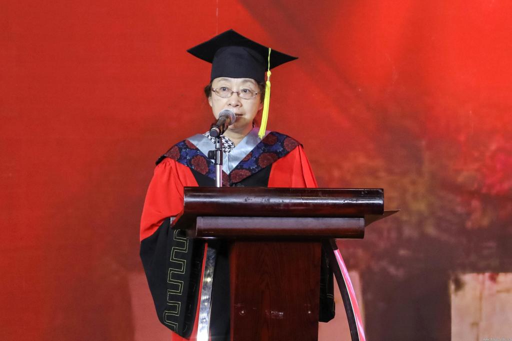 雷小玲女士作为毕业生家长代表表达了她作为家长的喜悦和对学校、对老师的感激之情,并为毕业生送上了祝福。她表示,四年的时间,北师珠用实力塑造出一位位优秀学子,自己也欣喜地亲眼见证了孩子的成长蜕变。作为家长,她用四句话叮嘱即将离校踏入社会的同学们:保持善良的温度,葆有坚持的厚度,心存感恩的态度,成就理性的深度。