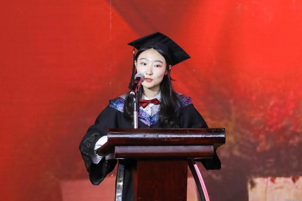 十佳毕业生代表张琪同学代表全体毕业生发表毕业感言。她表达了对老师们和家长们的感恩之情以及对母校的浓厚情感。“何其幸运!学在北师!”张琪表示,学校坚持以人为本,追求卓越,促进了同学们不断成长成才。将来不管走到哪里,不管在什么岗位,一定牢记母校和师长的殷切期望,记得金凤路十八号,记得“学为人师,行为世范”的校训精神,继续填好人生的履历表,交出事业的优秀答卷,为母校的旗帜增辉添彩。