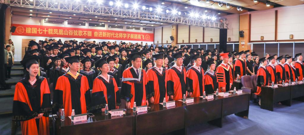 涂清云校长为十佳毕业生颁发毕业证书并授予学士学位,耿向东书记为十佳毕业生颁发荣誉证书。随后,校领导、学院(部)领导一起为来自全校14个学院(部)的毕业生代表行拨穗礼颁发学位证书。学位授予仪式结束后,全体师生齐唱校歌,仪式在热烈的掌声中圆满结束。