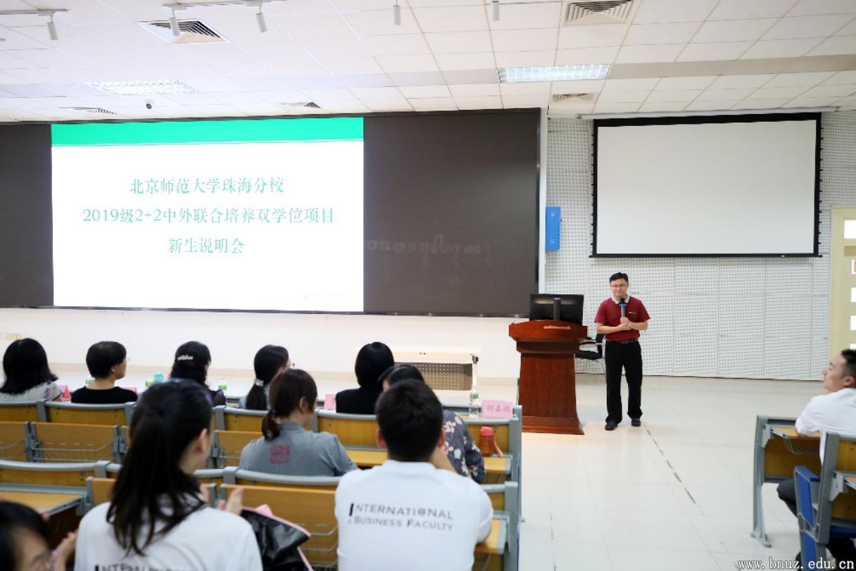 本网讯(通讯员 梁静远)8月30日下午,白菜官网在励耘楼A111举行了2019级2+2中外联合培养双学位项目(以下简称“2+2”)新生说明会。教务处、国际交流与合作处及各相关学院(部)的教师代表和2019级“2+2”全体新生参加会议。说明会由教务处处长胡嘉骢主持。
