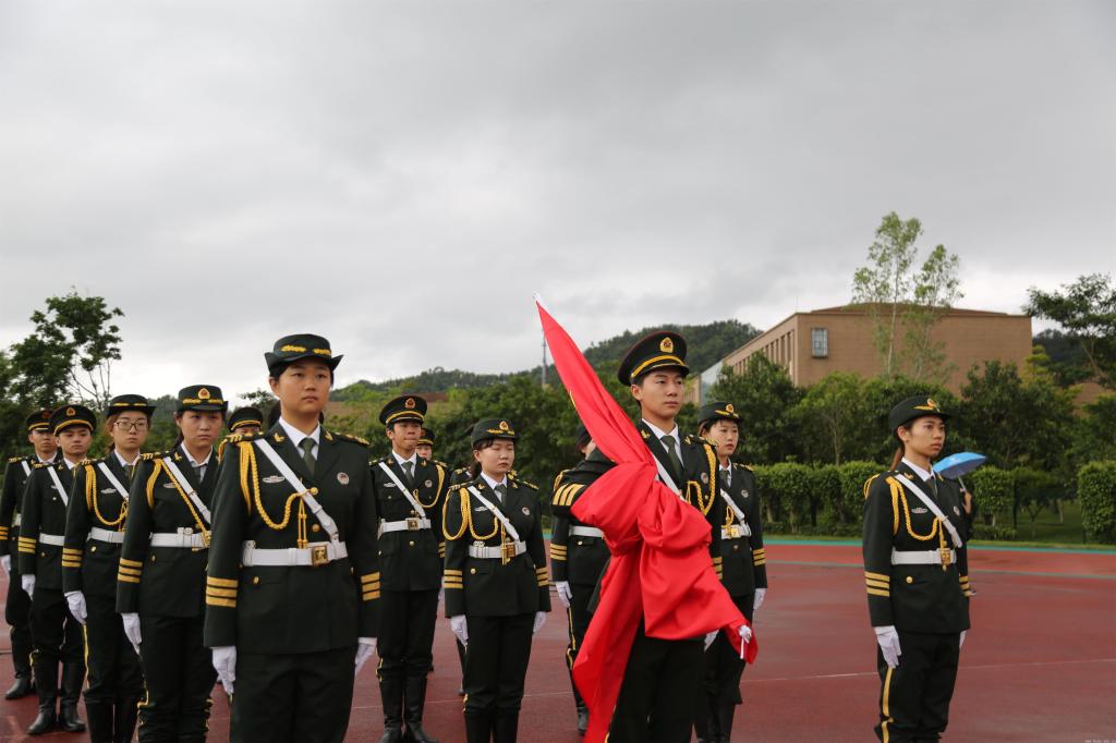 本网讯 9月2日早上7点,学校在大田径场组织了新学期首次升国旗仪式。党委学工部部长李楠、各院部辅导员老师、各院部2019级新生代表、校国防教育协会成员代表参加了升国旗仪式,校国旗护卫队组织了出旗和升旗。