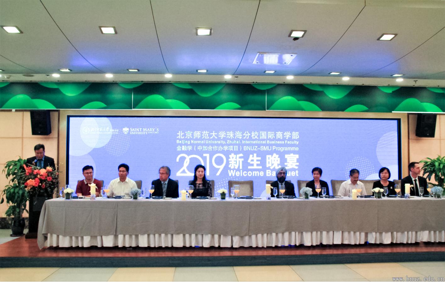 8月30日,2019级金融学(中加合作办学项目)新生晚宴暨新生训练营成果汇报在国际交流中心举办。全讯800cc大白菜党委常委、副校长珠海校区管委会主任王守军,珠海校区管委会副主任、中加合作办学项目管委会主任傅爱兰、加拿大圣玛丽大学索比商学院院长Harjeet Bhabra、国际商学部部长仲鑫、外国语学院院长陶文好、财务处处长宁少林、教务处处长胡嘉骢、国际交流与合作处处长邱月,中加合作办学项目学术主管Miguel Morales、商贸本科项目助理主任Jonathan Regan、国际商学部相关领导和教师以及2019级全体新生出席了本次晚宴。
