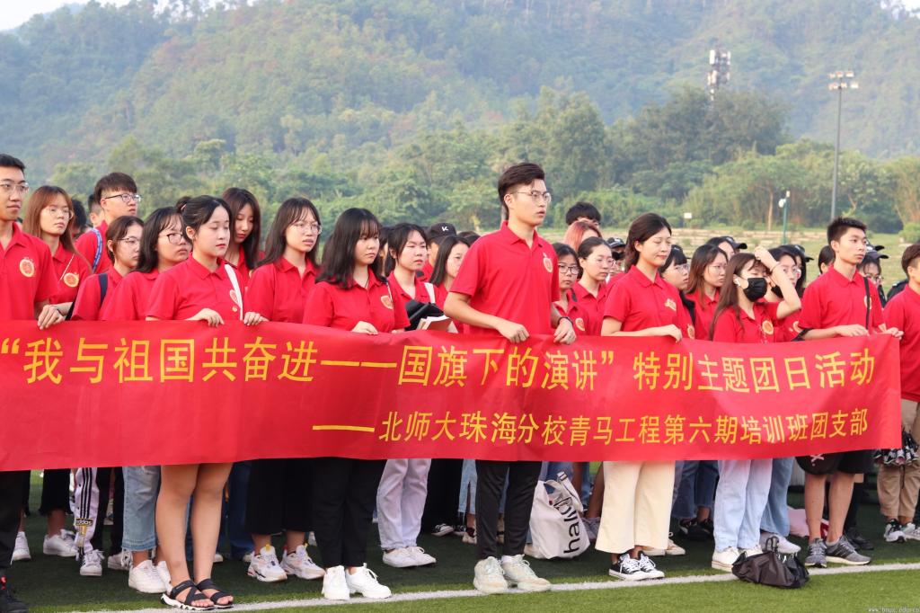 本网讯(通讯员 张云龙)为庆祝中华人民共和国成立70周年,大力唱响礼赞新中国、奋进新时代的青春主旋律,校团委于9月9日早上组织开展了“我与祖国共奋进——国旗下的演讲”特别主题团日活动,校“青马工程”第六期培训班全体团员、校团委部分学生干部参加了活动。