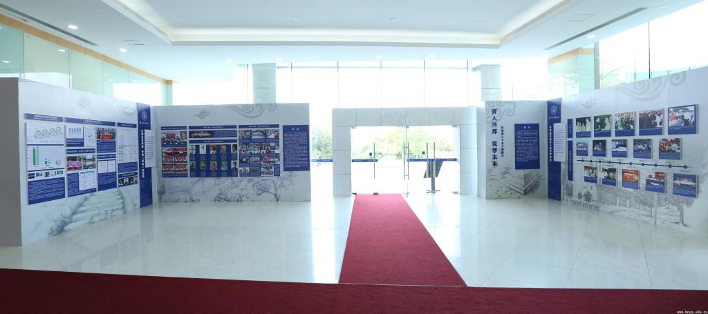 “育人兴邦 筑梦未来”——庆祝第三十五个教师节主题展览包含两部分专题展览。励教楼大厅的专题展览,专版重温了习近平总书记考察北师大的珍贵历史时刻,回顾了历年来党和国家领导人对北师大的亲切关怀,展示了五年来北师大在公费师范生培养方面取得的成就,宣传了“四有好老师”奖励计划启功教师奖获奖者、公益行动奖获奖团队以及学校“四有好老师”终身成就奖、金质奖章获得者的先进事迹。