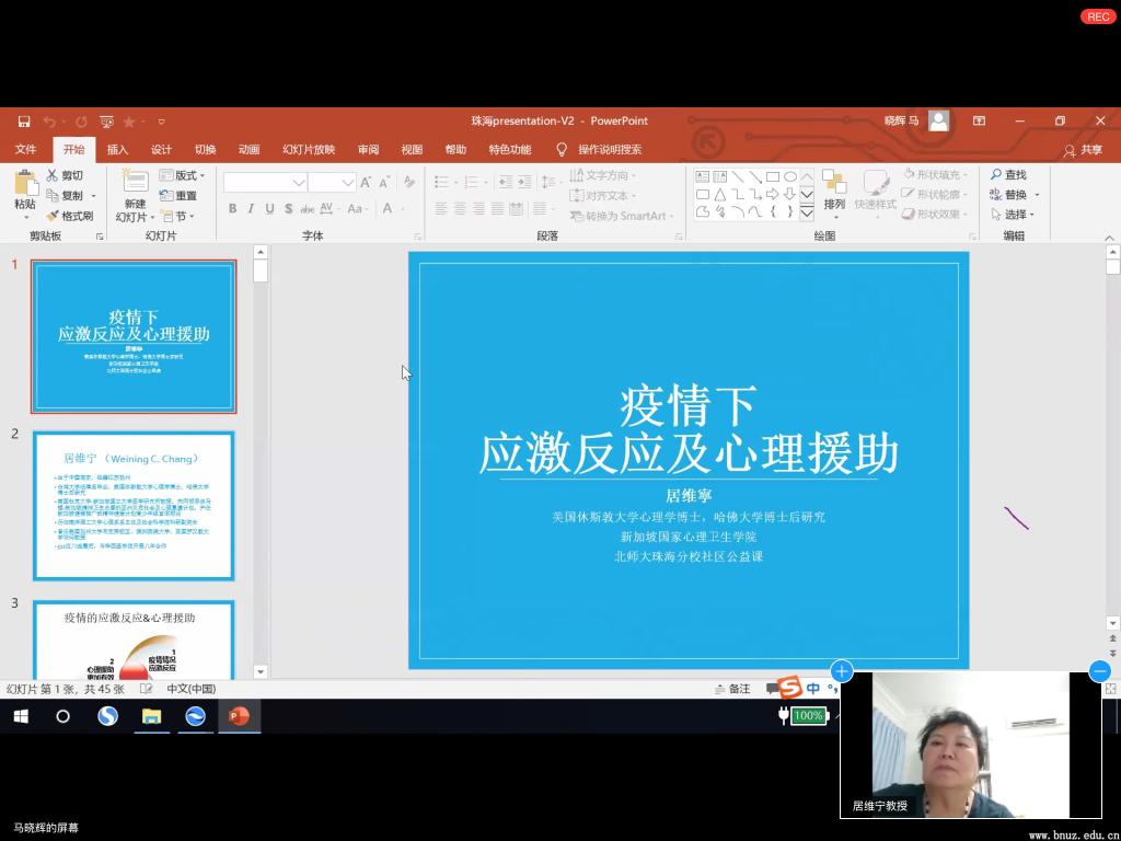 本网讯(通讯员 杨薇薇)2月7日晚,学校心理健康教育与咨询中心举办疫情防控心理线上系列培训,邀请新加坡国家精神卫生学院的居维宁教授在“瞩目”线上会议室开展《疫情下应激反应及心理援助》讲座,全校辅导员、班主任近80人在线参加学习。此外,讲座对广东省高校大学生心理健康教育与咨询区域中心(第八片区)的高校同步开放,部分来自珠海、中山、江门的14所高校的心康专职教师和辅导员也参加了本次培训。