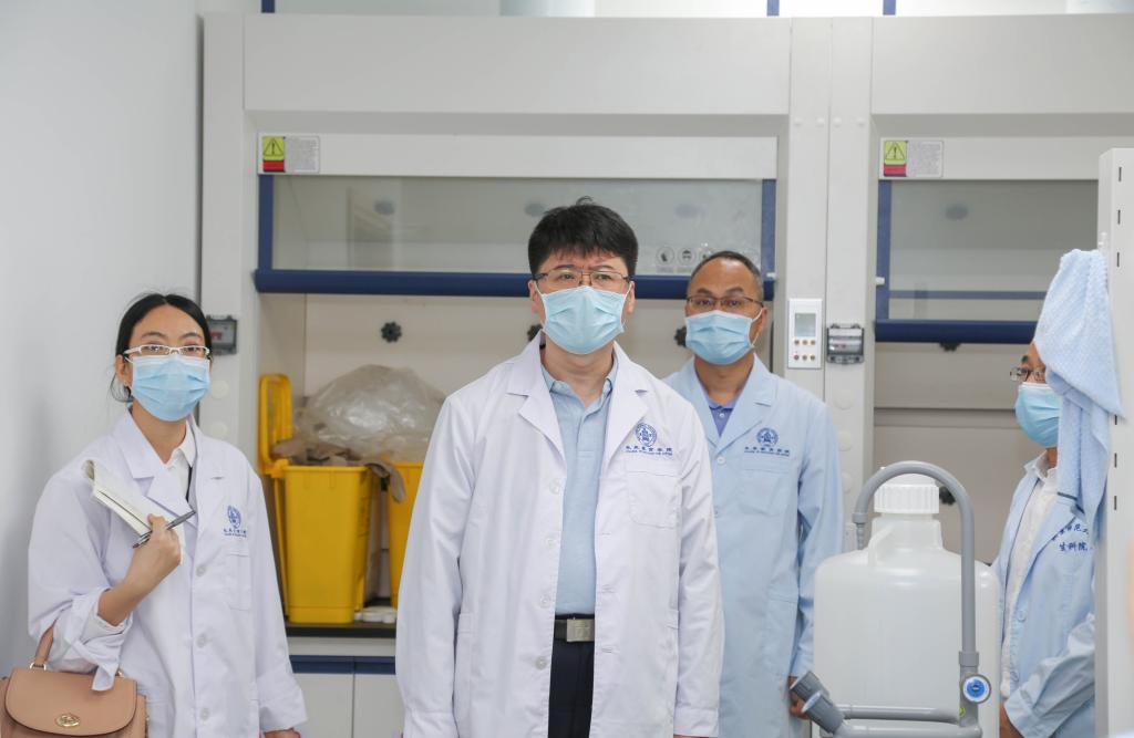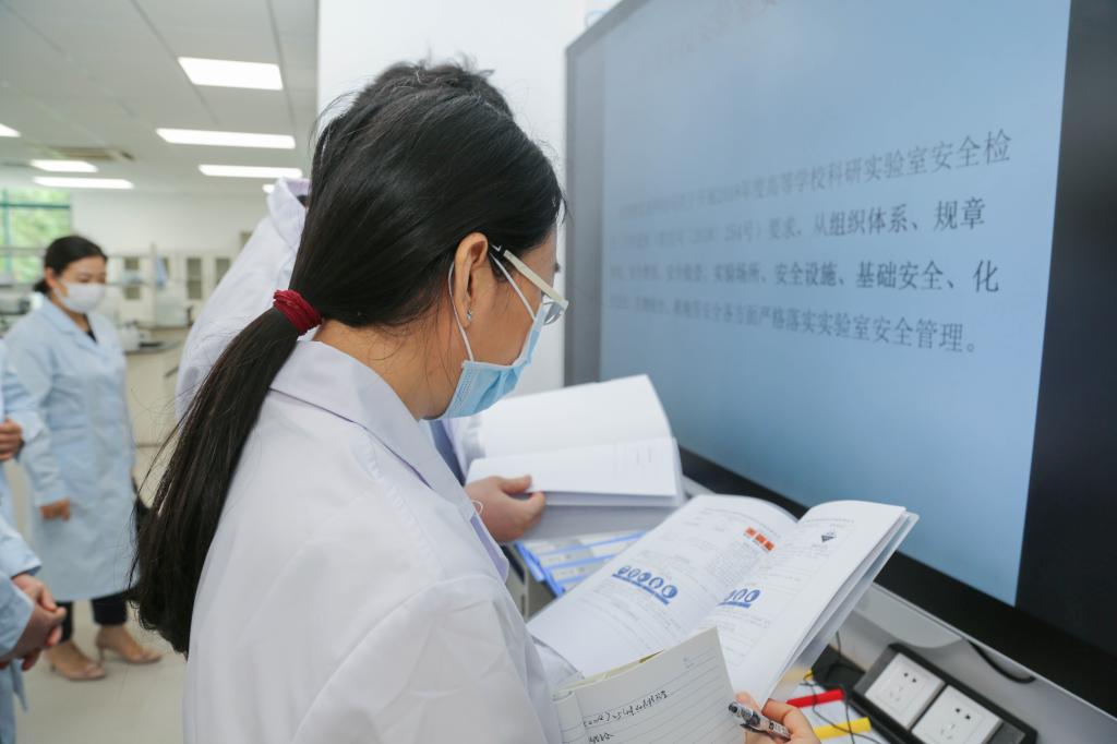 调研指导组在励教楼先后检查了实验准备室、易制爆危险品储藏间、易制毒危险品储藏间、化学和生物专业化学品储藏间、普通物品储藏间及废液间。孙波对药剂室配置的专业级防爆摄像头、防爆灯、气体检测仪、防爆开关和排风系统等设备进行了介绍,并对照高等学校实验室安全管理要求,从组织体系、规章制度、安全教育等方面作了汇报。