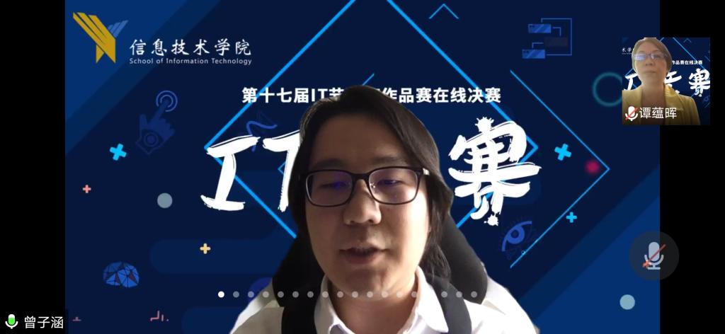 IT节是信息技术学院一项盛大的学生学科竞赛活动,今年已是第十七届,也是最特殊的一届。受疫情影响,今年IT节各环节的分组初赛均采用网络竞赛形式进行。IT作品赛是IT节中最核心的竞赛活动,含软件开发类、软硬件一体类和设计类、优秀毕设类四个组,经过分组赛的筛选,本次有12份作品进入决赛。决赛使用腾讯会议直播平台,以线上答辩形式有序展开。