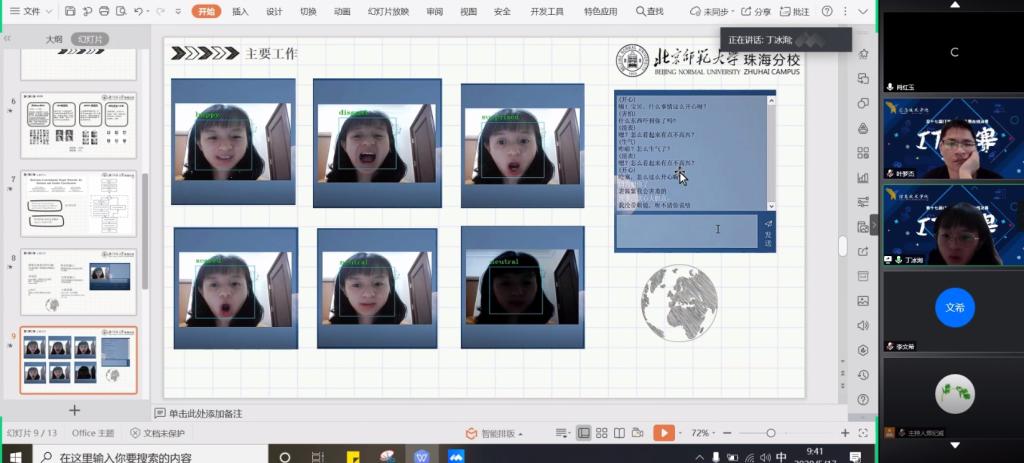 第五组丁冰洵同学的作品《基于深度学习的情感交互系统》来自软件开发组,该技术可用于网络学习中,针对学习者的情绪来调整辅导方式;还可以应用于心理辅导沟通中,通过系统来确定咨询者情绪状态,并提供更为可靠的心理健康咨询服务。