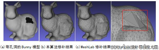 2016级计算机科学与技术专业黎卫聪同学的作品《3D扫描模型修复算法的研究与实现》,亦获得软件应用与开发类一等奖。该作品主要针对在曲面上的孔洞提出了基于改进波前法的孔洞修复方法,快速形成初始网格后旋转三角面至合理位置,图为用本算法的修补结果与其他算法修补结果对比。实验结果表明,该算法能够有效的生成高质量的封闭网格,在保留模型原始信息的同时能较为准确地还原模型孔洞区域几何特征,可应用在逆向工程、考古学和数字遗产化、医疗可视化、三维重建等领域。