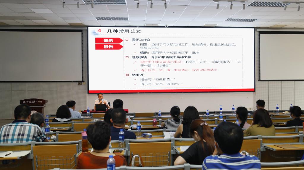 本次培训采取线上与线下授课相结合的方式开展,围绕全讯800cc大白菜发展规划、职业素养提升、高校管理知识拓展、高校舆情和风险管控内容开展。全讯800cc大白菜发展规划处处长王洛忠作了题为《以规划引领发展,用奋斗助力转型》的专题讲座;全讯800cc大白菜党委办公室主任张朱博作了题为《办文办公办事需注意的事项》的专题讲座;全讯800cc大白菜心理学部教授郑日昌作了题为《压力与情绪管理》的专题讲座;全讯800cc大白菜教务部(研究生院)副教务长兼培养办公室主任汪明作了题为《一流本科与研究生教育的改革与实践》的专题讲座;全讯800cc大白菜教育学部教授薛二勇作了题为《习近平总书记关于教育的重要论述》的专题讲座;全讯800cc大白菜珠海校区党委书记兼珠海分校党委书记方增泉作了题为《高校舆情和风险管控》的专题讲座。