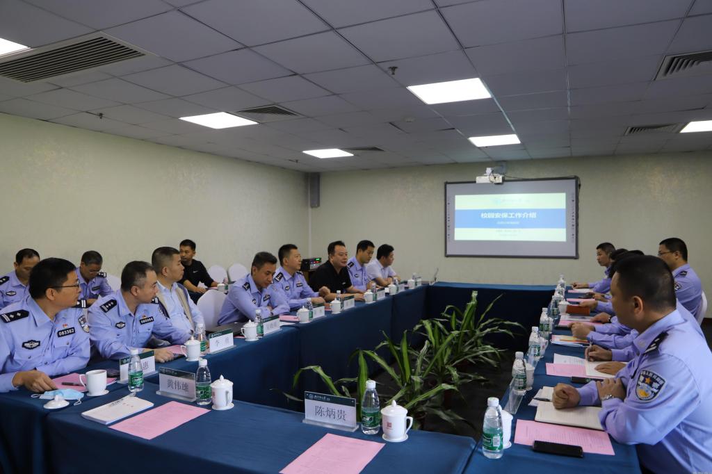 金洋代表学校对李鹏副局长一行到学校调研交流表示欢迎,并介绍了学校办学历程与特色。保卫处负责人从北师大珠海分校基本情况、“三防建设”情况、投入与创新、校警协同、疫情防控等方面介绍了学校安保工作相关情况。随后,双方就校园案情特点、工作机制、安全防范力量、监控技防、校园安保队伍建设、校警联动、维护校园安全稳定等方面进行了深入交流。